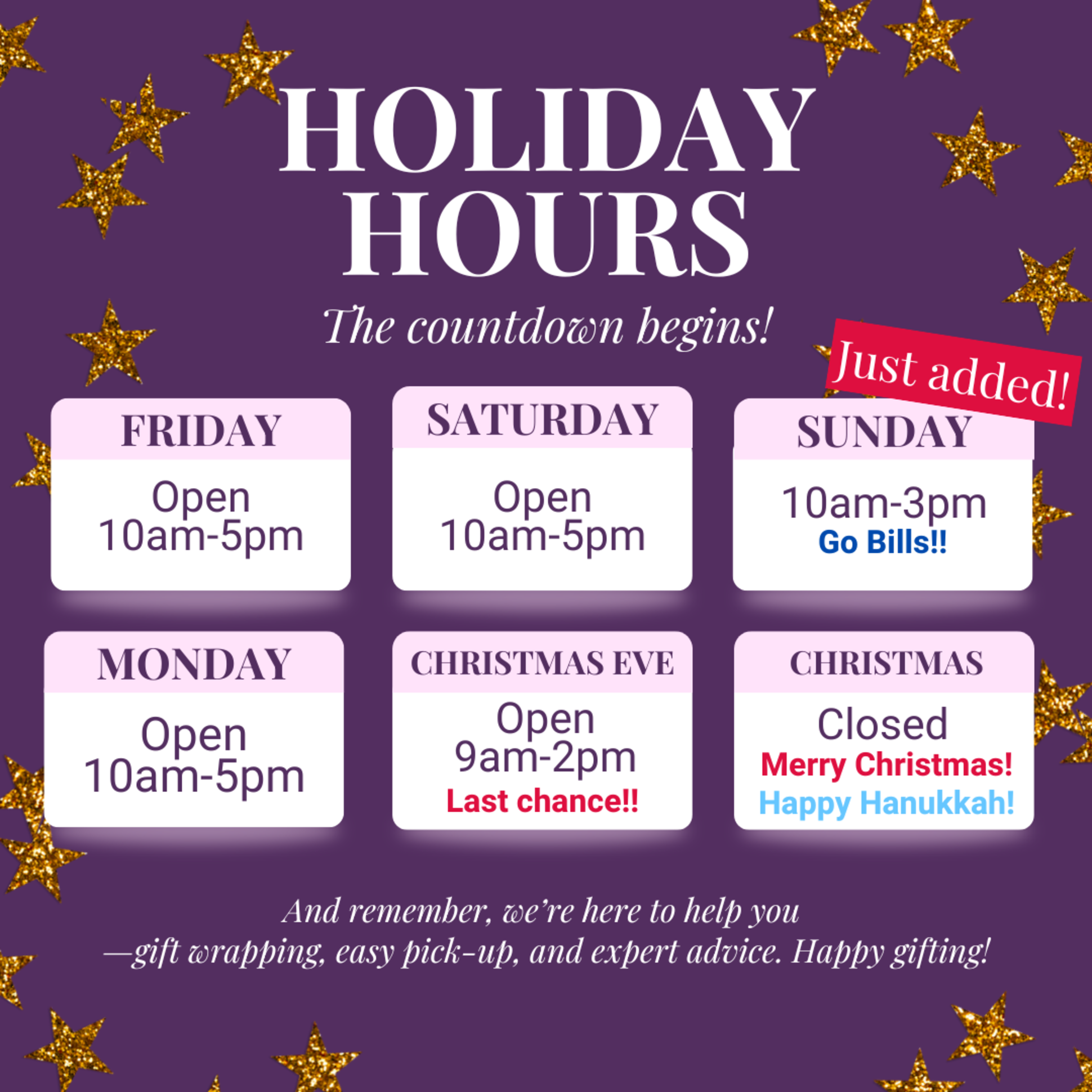 To accommodate your busy schedule, we’ve extended our holiday hours for December. Stop in, and let us help you find gifts that your loved ones will adore—or treat yourself to a little festive luxury!