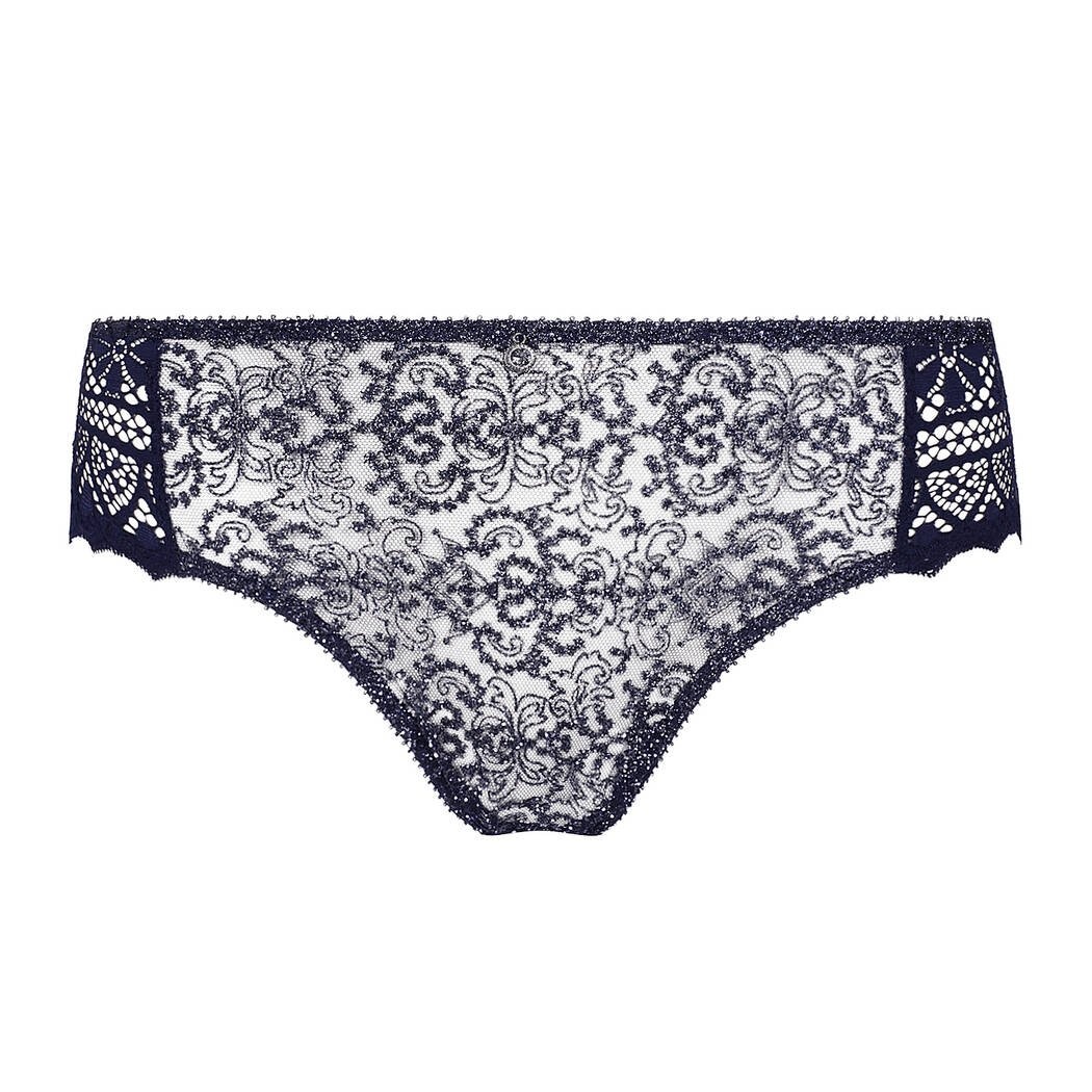 A stunning bikini panty to match your Cassiopee Bra! Sheer mesh across the full coverage bum, embroidered mesh in front and lace insets at the hip make this panty special.