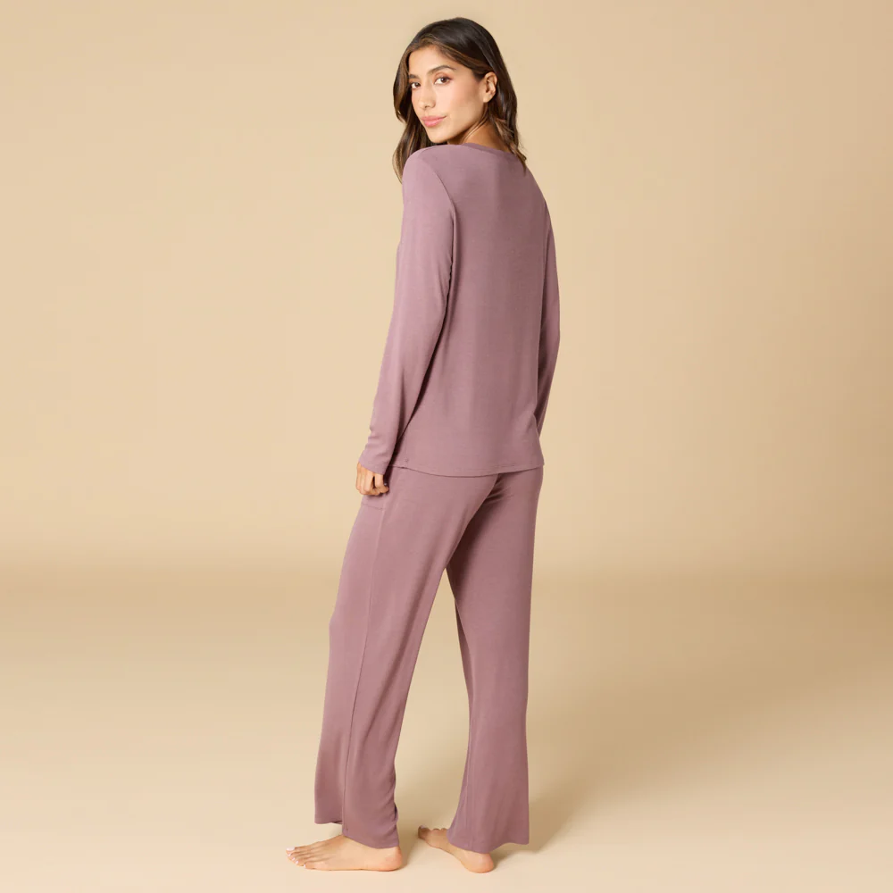 Natalie V-Neck Long Pant PJ Set - Driftwood