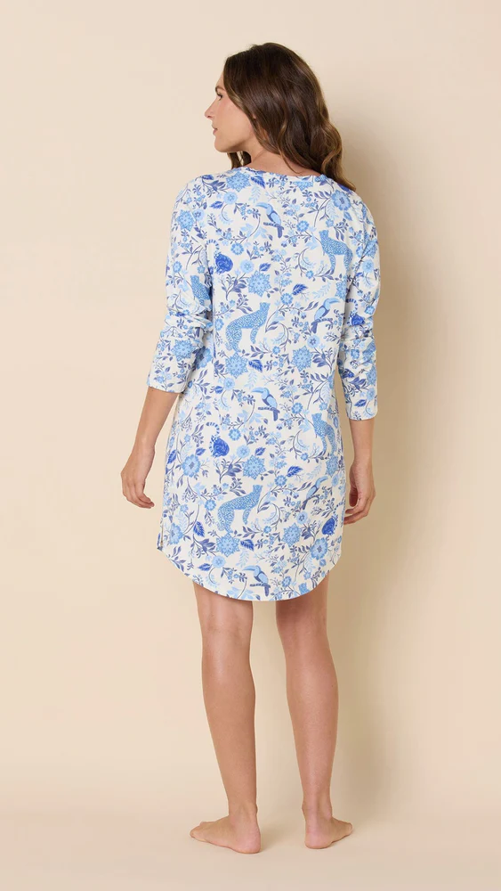 The Cat's Pajamas searched the globe for the perfect knit fabric for their pajamas. They started with hand pulled Peruvian Pima cotton, which is known for its silky luster and unbelievably soft hand. They combined this Pima cotton with Modal to get the perfect drape and added Elastane to give it stretch and recovery so they look and feel great with every wear. This simple nightshirt is so luxuriously soft you'll never want to change out of it.