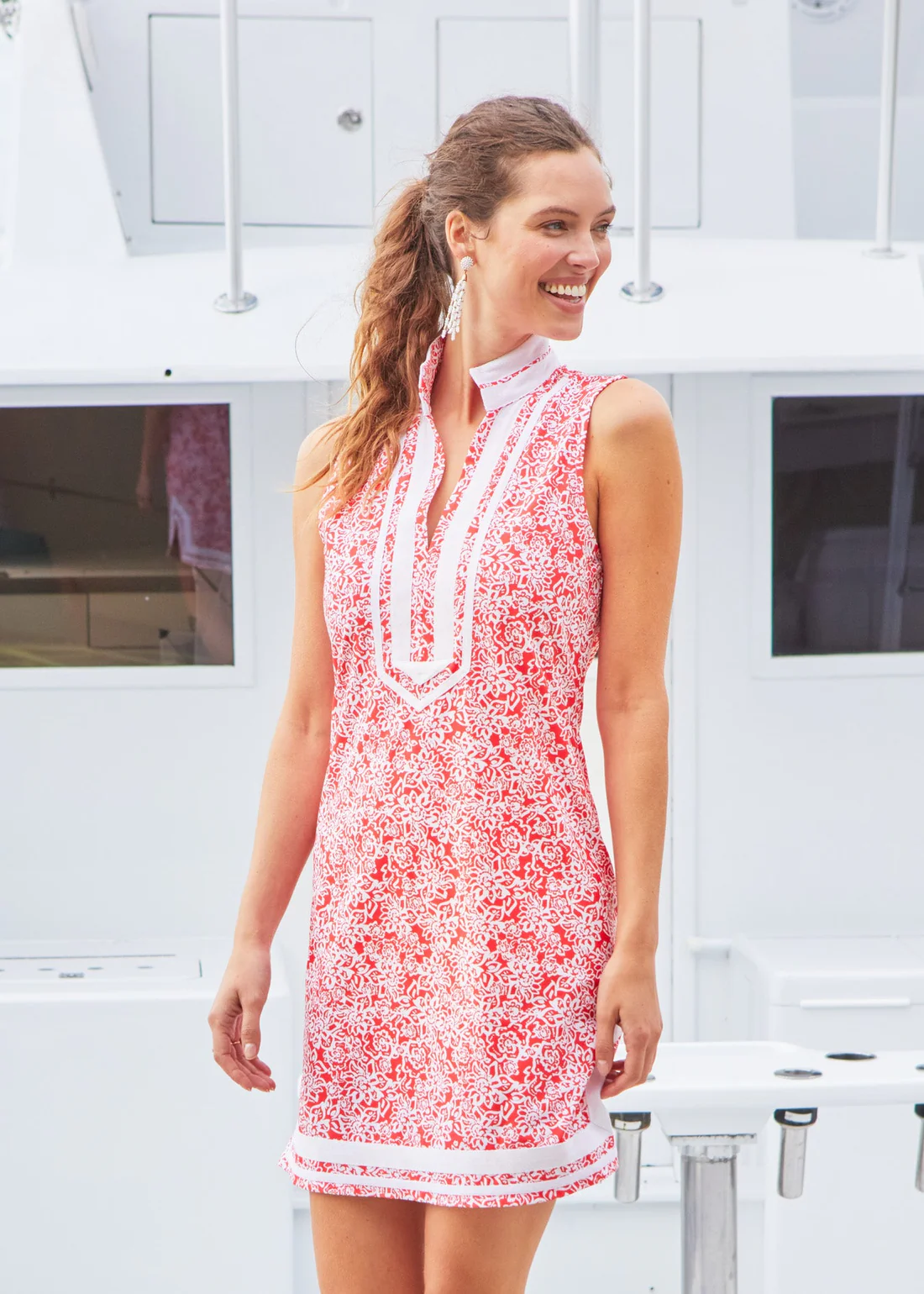 Style notes: The Americana Tunic Dress is a simple yet chic style to add to your summer wardrobe roation! It also features a cheerful orange/red floral print accented with white twill tape. Made with premium sun-protective fabric, you’ll shield your skin from damaging rays.